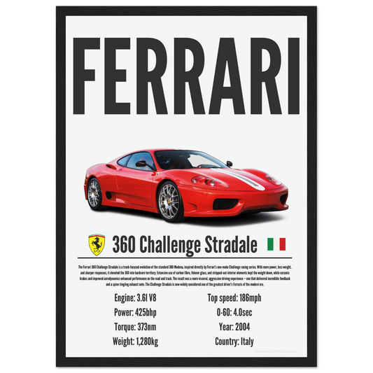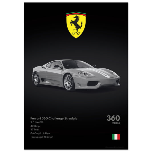 411 Ferrari 360 Challenge Stradale Poster - Monochrome Collection
