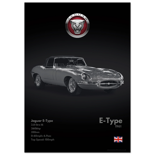 410 Jaguar E-Type Poster - Monochrome Collection