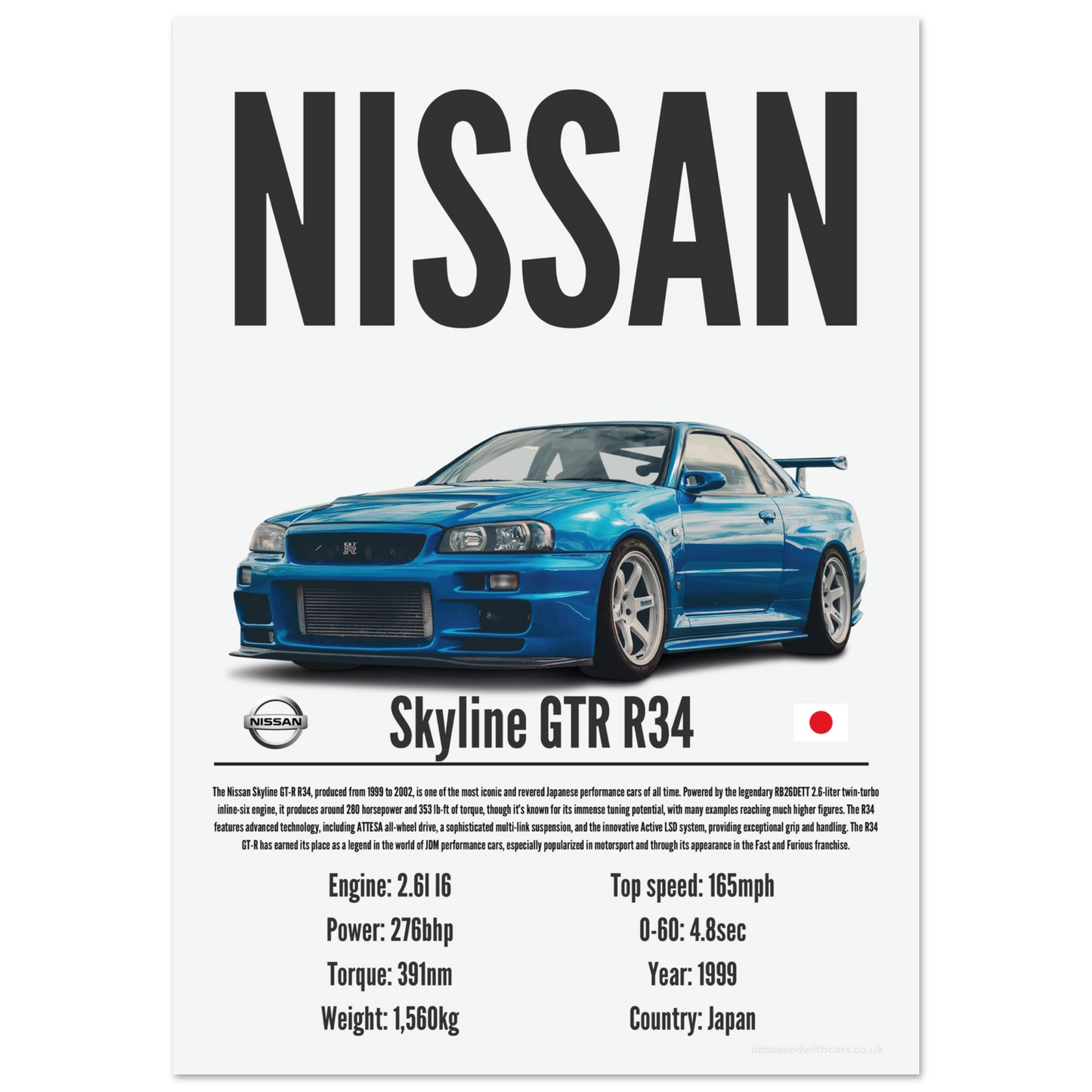 Nissan Skyline GTR R34 Poster - Precision Collection