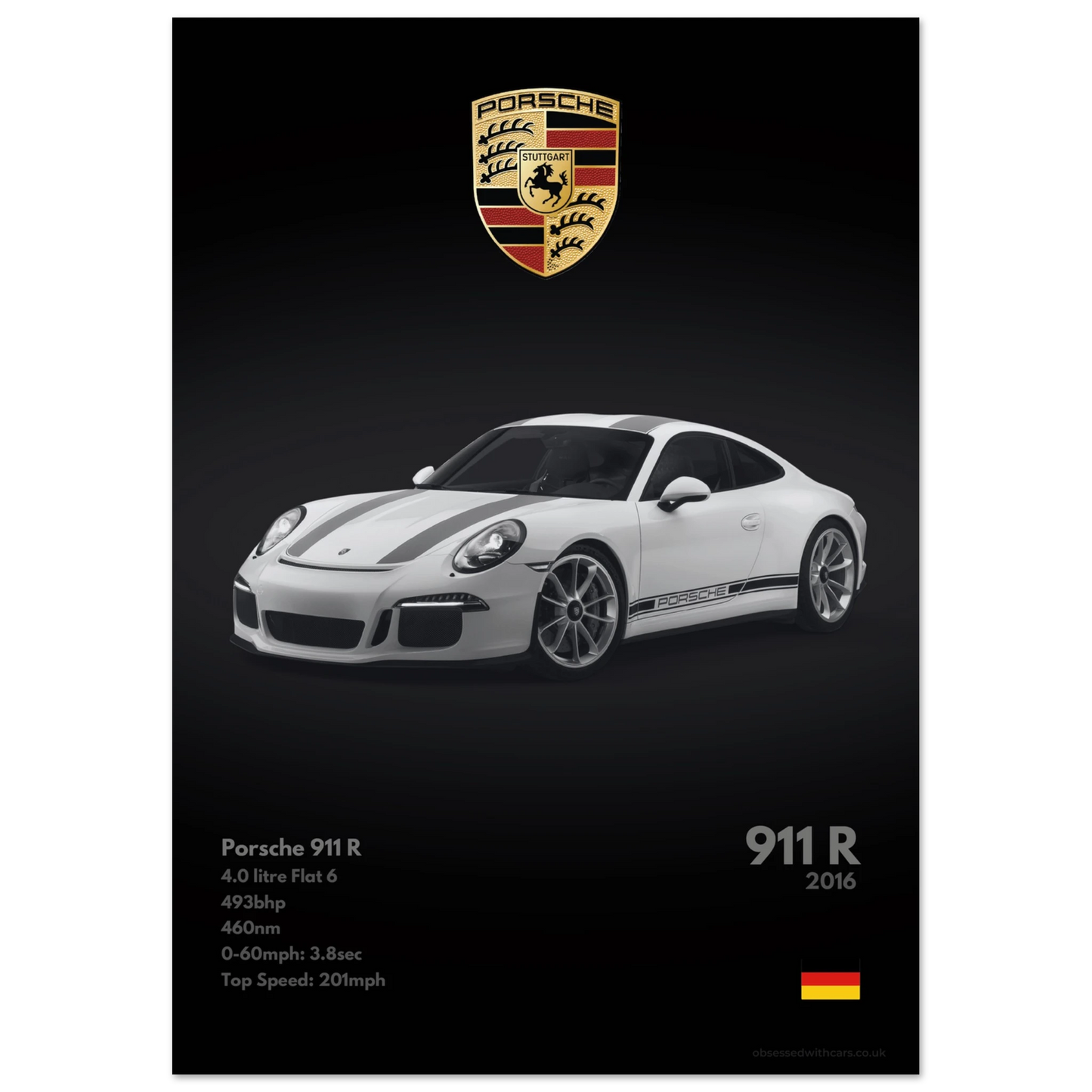 Porsche 911R Poster - Monochrome Collection