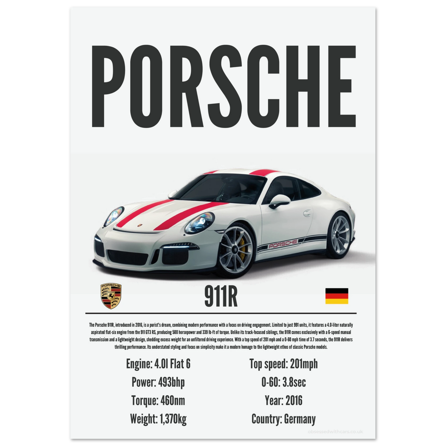Porsche 911R Poster - Precision Collection